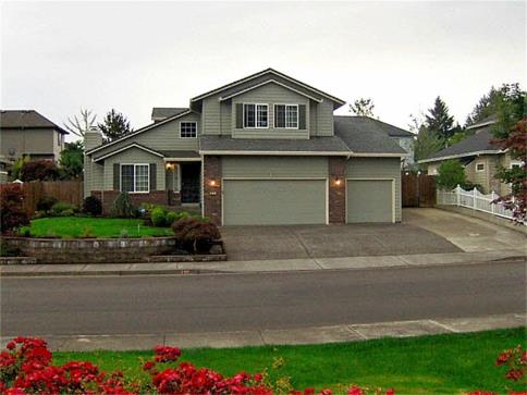 Upstairs there is a large master suite with soaking tub and shower, and a large walk-in closet, plus the 2nd and 3rd bedrooms and main bathroom, too. There is a terrific yard with a sports court, play house, tool shed and even RV parking, and its all sprinkled. All this plus a three car garage, forced air gas heat and central AC!