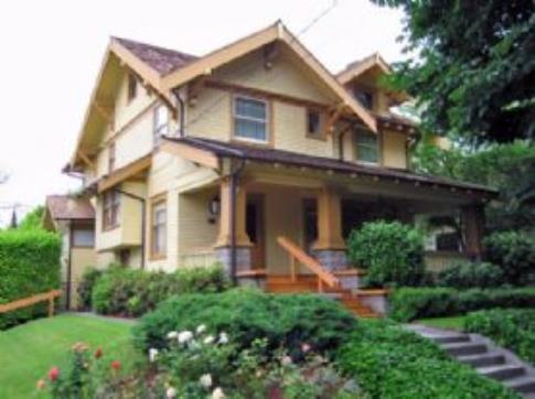 This three level craftsman style home sits right in the Laurelhurst neighborhood. With 2986 square feet, plus additional unfinished basement, this home boasts lot of large rooms and high ceilings too. The main floor has a formal entry from the huge porch, plus a living room with a wood burning fireplace, and oak floors under the carpets. The living room is adjacent to the spacious formal dining room which is next to the kitchen, which also opens to an informal eating area too.